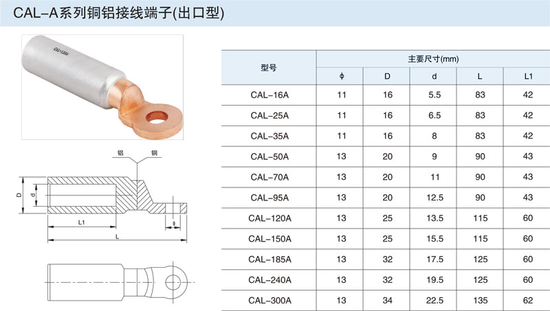 CAL系列銅鋁接線端子(出口型)