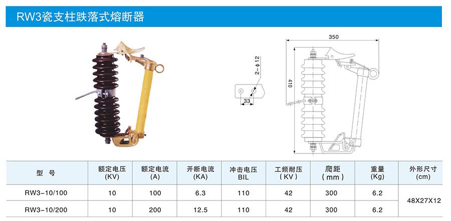 RW3瓷支柱跌落式熔斷器